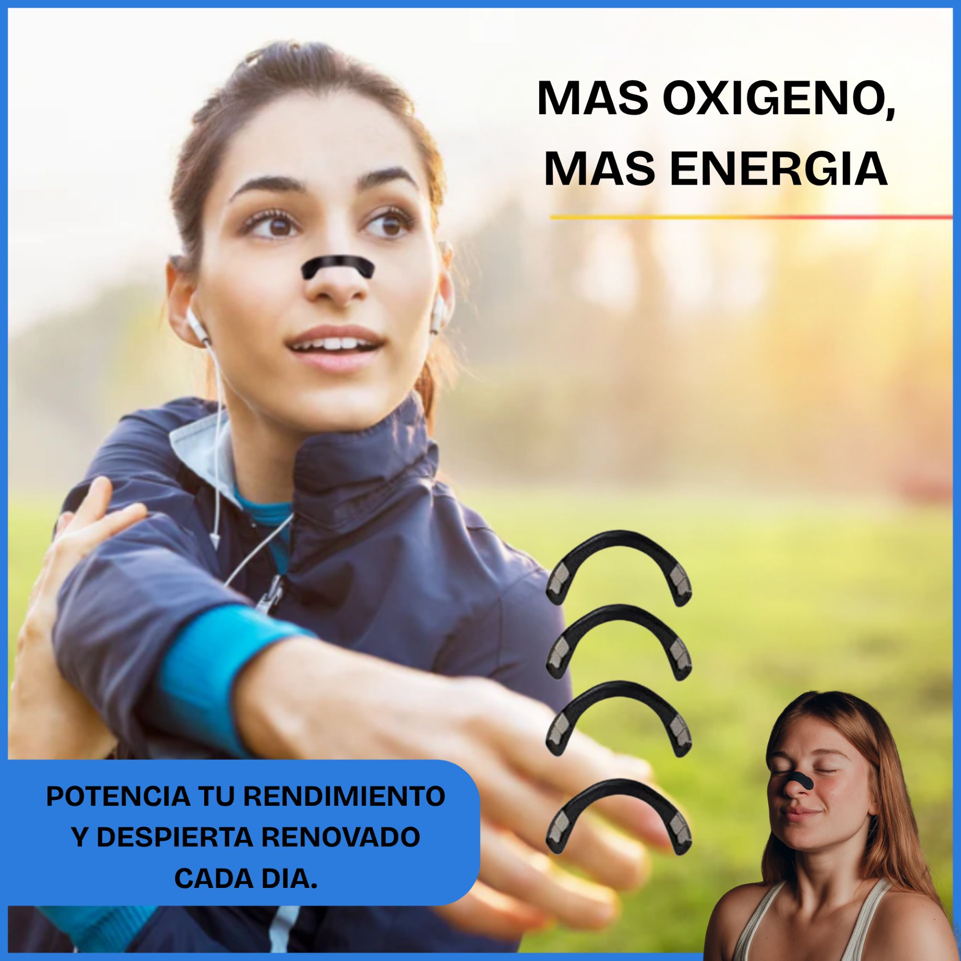 Nuestros Dilatadores Nasales Magneticos te ayudan a abrir las vias respiratorias, mejorando la entrada de oxigeno durante el ejercicio.